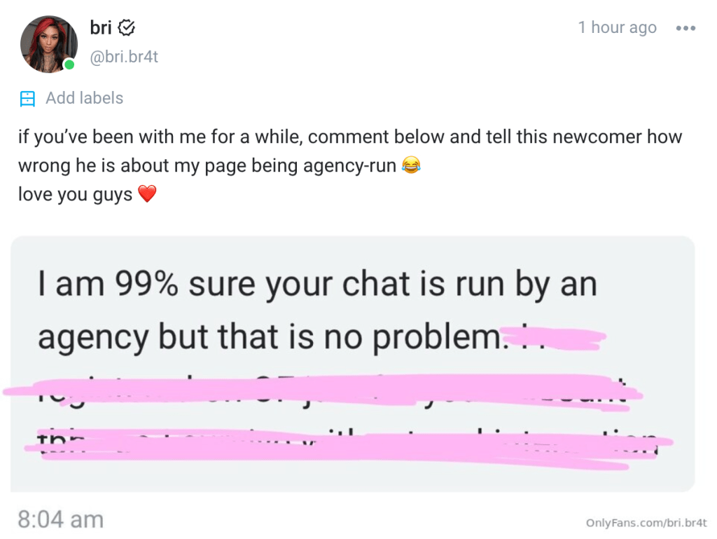 with so many OF girls turning to chatters & agencies to run their page, i get why people are suspicious.